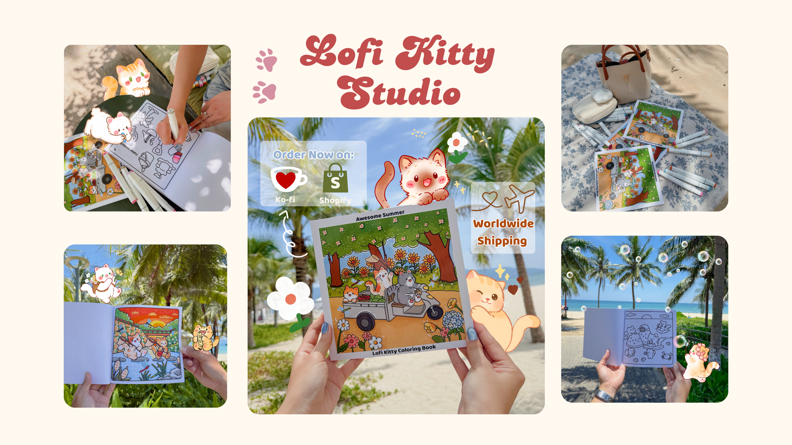 Awesome Summer Lofi Kitty Coloring Book | Coloring Book for Adults and Kids | Super Cute Animal Characters with Easy and Simple Designs for Relaxation
